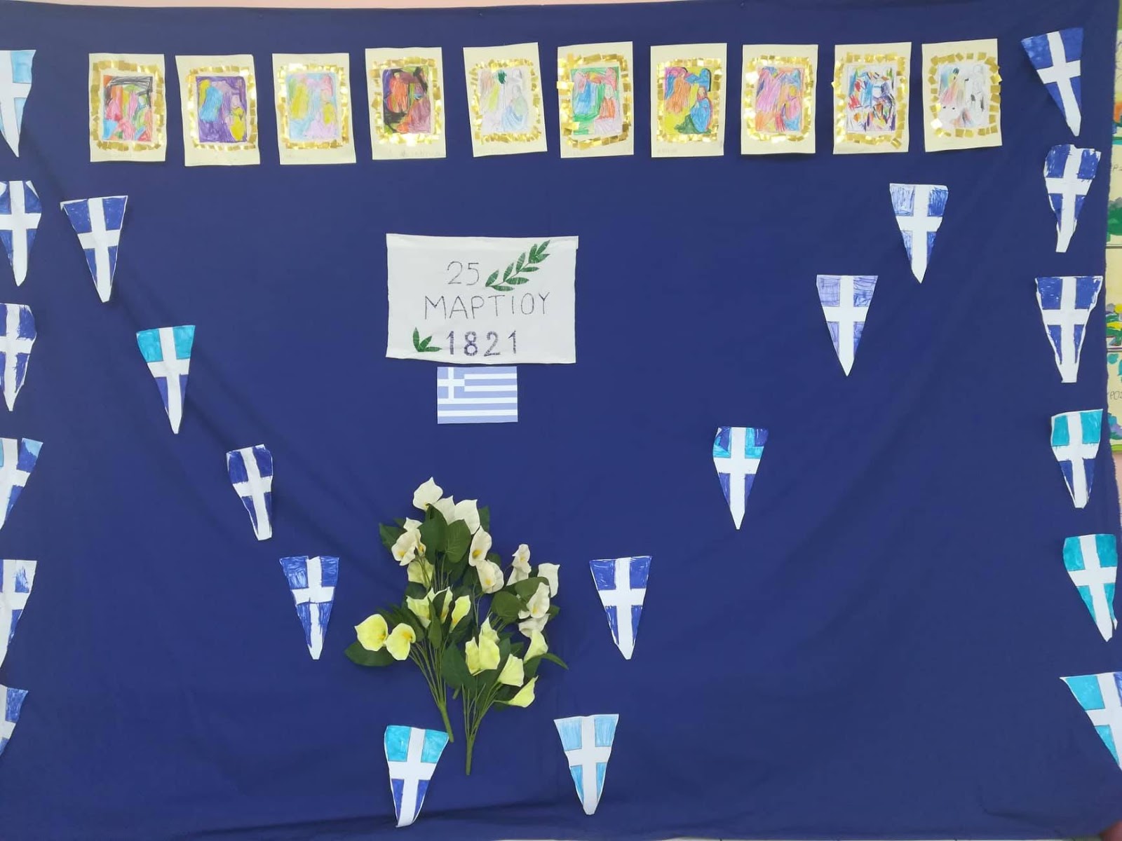 Το κέντημα μας ετοιμάστηκε μία ημέρα πριν την γιορτή μας και με μεγάλη χαρά το στολίσαμε στο σκηνικό μας.